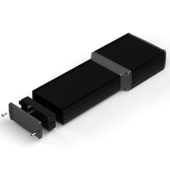 Extruded aluminium cases with high quality finishing, ergonomically designed for a comfortable fit into the user’s hand. Perfect for instrument or mobile data enclosures requiring a keypad and display. Internal PCB guides. The model with “-B” has a battery compartment for two 1,5V mignon-cells (AA) or one 9V battery (PP3). Closing by twelve screws.