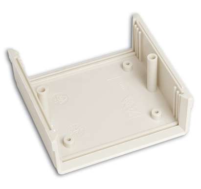 A small Polystyrene enclosure with a front and rear panel. Each half-shell has integral PCB guides and mounting studs. Matt surface finish. Closing by only two screws. Upon request aluminium panels (Mod. AP11, AP12, AP22).
