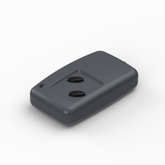 Ergonomic designed ABS enclosures available from one to six push-button configurations. The model “11120” has no buttons. The base has a integral PCB mounting studs. The enclosure is supplied with two metal contacts for 12V battery (Mod. ABM). Matt surface finish. Closing either snap-on or by one screw.