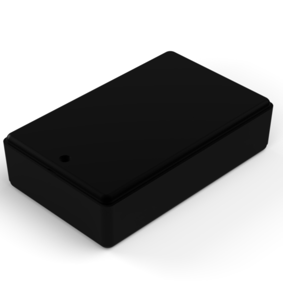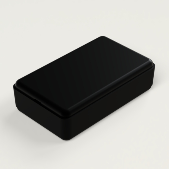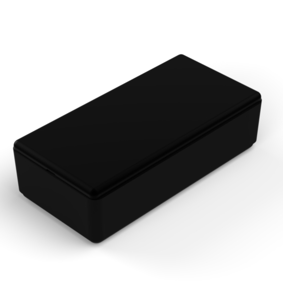 ABS enclosures with rounded corners. Base and cover have integral PCB mounting studs. The models “10011”, “10012-B” and “10013-B” have a closing by one screw. The model “10012-B” has a 9V battery compartment. The model “10013-B” has a compartment for two 9V batteries. Matt surface finish.