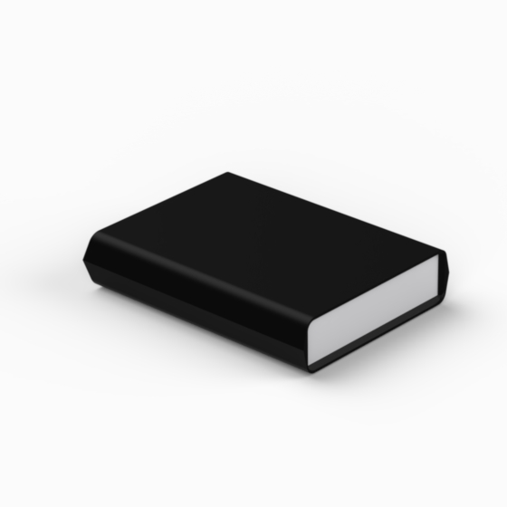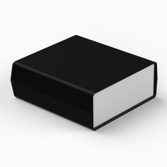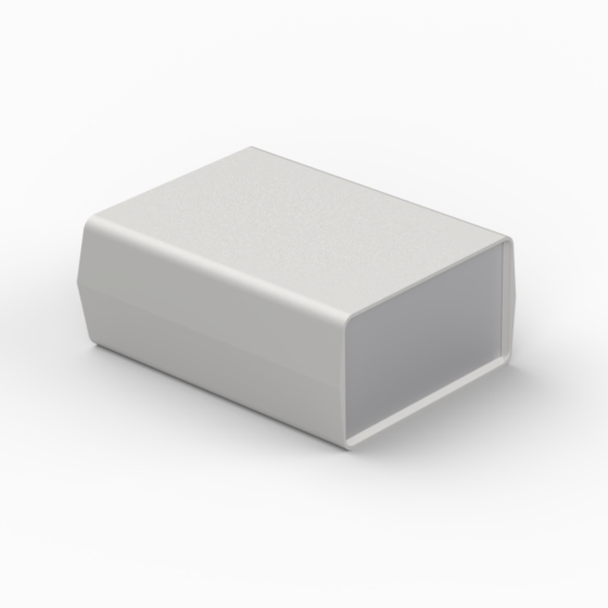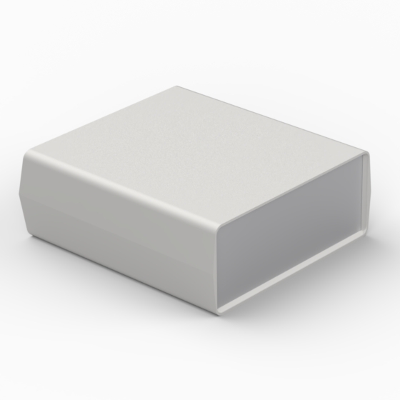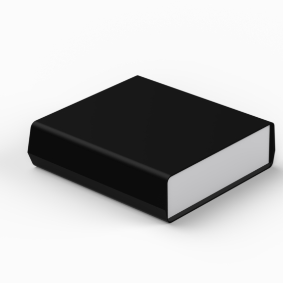 Coffrets en ABS avec 2 panneaux en aluminium de 1 mm d’épaisseur. Des guides et des plots internes permettent la fixation d’un circuit imprimé. Surface opaque. Fermeture par deux vis.